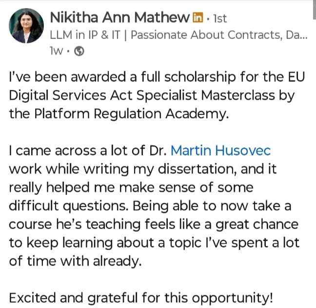 I get it. You want to study the EU Digital Services Act, but you are unsure if my DSA Specialist Masterclass is the right way to acquire expertise. This page offers you testimonials of my former students, which can help you to make a decision. You can also preview some of the course material and take a free course to see how it feels.